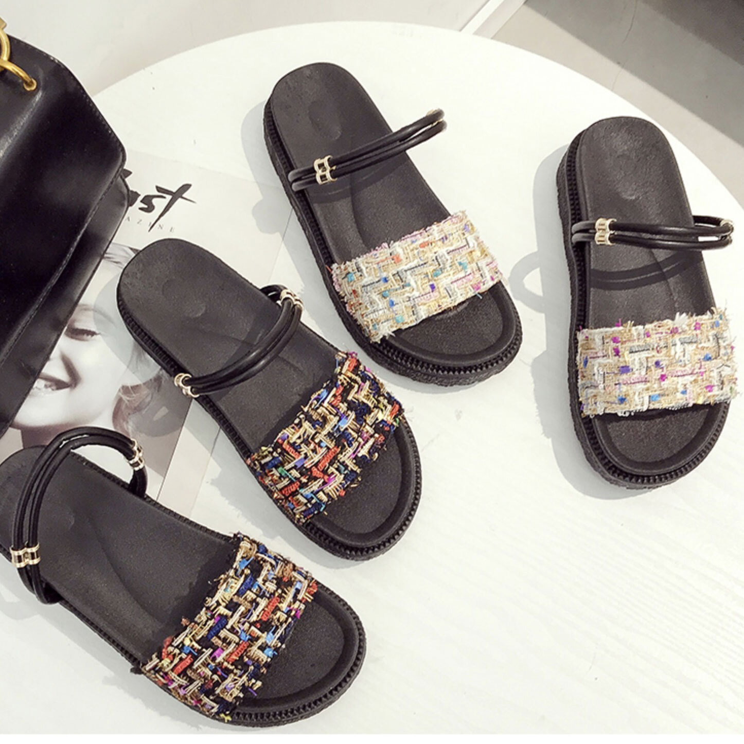 韓国レディースファッション 6635 サンダル スリッパ ぺたんこ ビジュー フラットサンダル カワイイ お洒落 ビーチ ローヒール 流行オルチャンファッション 人気のプチプラ韓国レディースファッション新作通販 Aliceholly